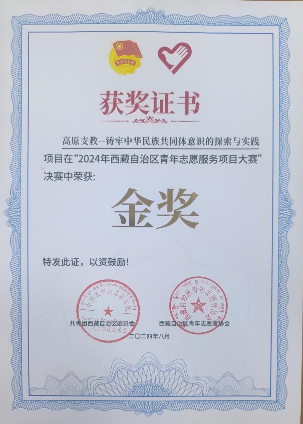 我校在2024年西藏自治区青年志愿服务项目大赛中荣获金奖