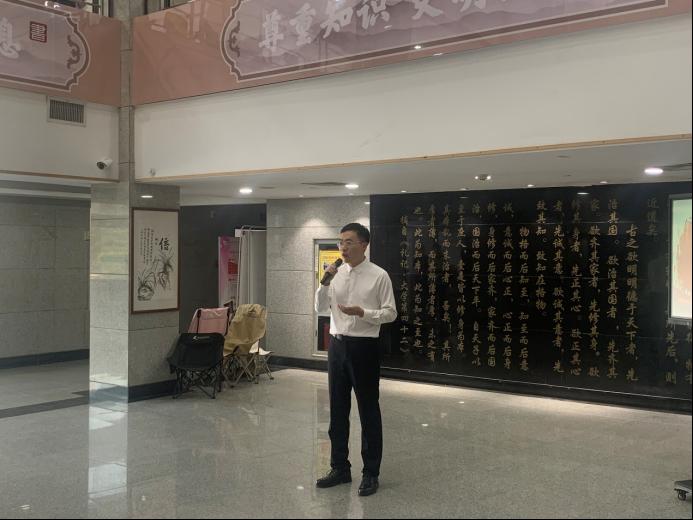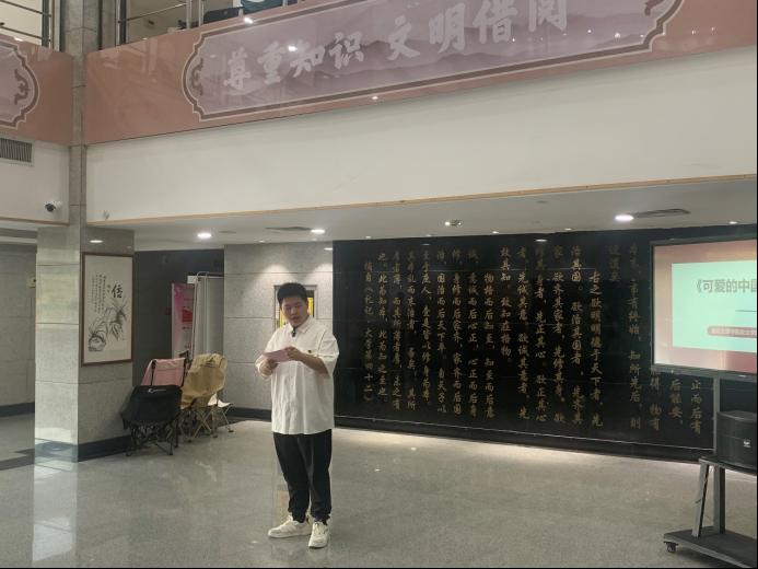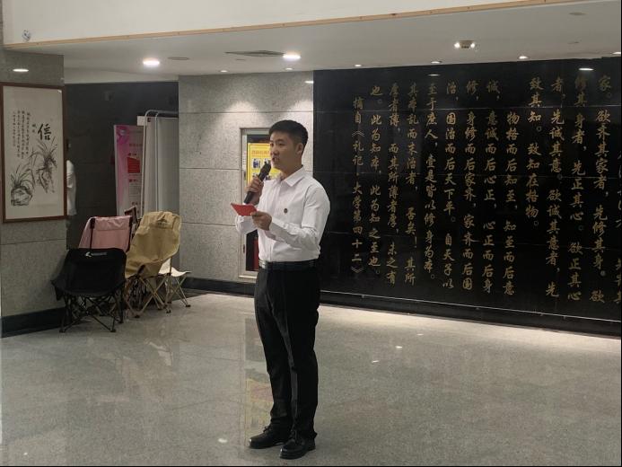 学校本科生邱钢,向大家推荐书籍《可爱的中国》,和大家重温了方志敏在狱中对共产主义初心不改、信仰弥坚,用笔做武器,继续宣传革命思想的事迹,号召大家学习革命先辈不畏牺牲、英勇斗争的精神。