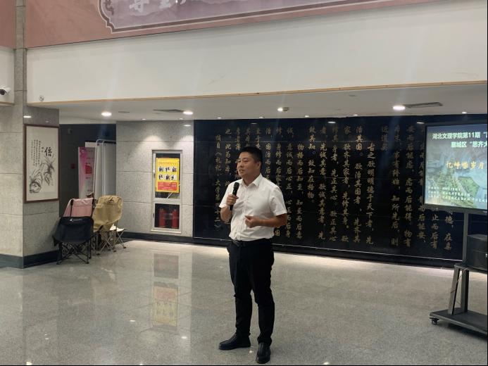 活动开场,学校校友、襄城区民政局副局长高伦思演唱原创校园民谣《隆中山下》,他以质朴深情的演唱,诉说着对母校的深厚感情和对大学生活的怀念。