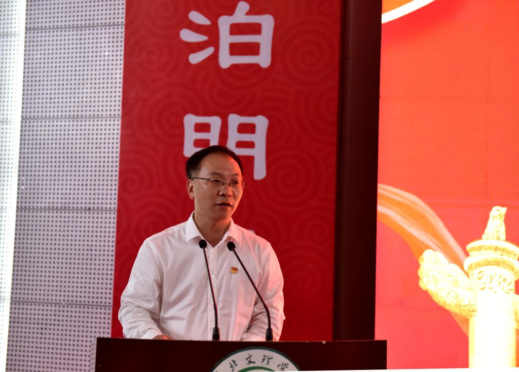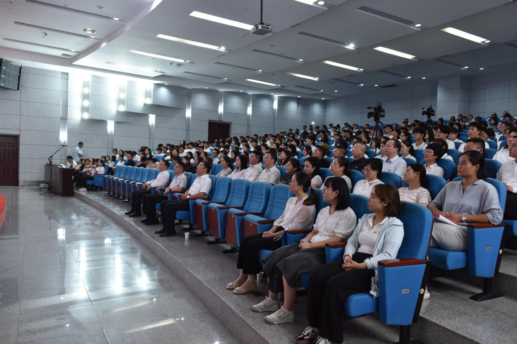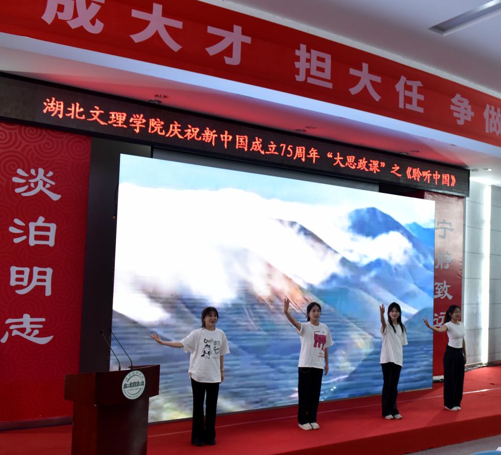 (音乐与舞蹈学院 通讯员 张博谦)为庆祝新中国成立75周年,深入推进大中小学思政课一体化建设,加强学生思想政治教育,激发师生的爱国热情,9月29日下午,学校庆祝中华人民共和国成立75周年“大思政课”之《聆听中国》在图书馆三楼报告厅开讲。学校党委书记吴超仲,襄阳市委教育工委委员、市教育局党组成员、副局长边强出席活动。大中小学思政课一体化共同体建设成员单位代表,学校大学生思想政治工作组成员单位负责人、二级学院党委副书记,学生代表等参加此次活动。活动由学校党委副书记、副校长张樊主持。