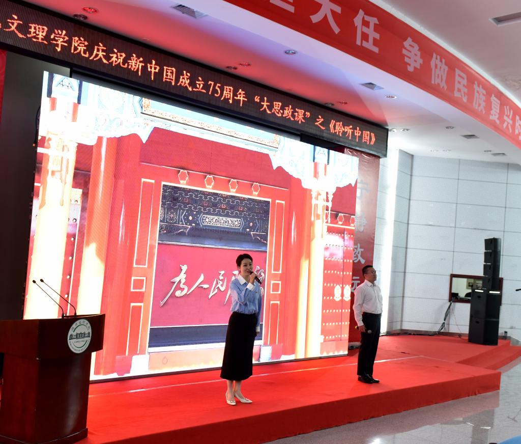 《聆听中国》是由学校党委宣传部指导,音乐与舞蹈学院、马克思主义学院精心组织的一节音乐思政课,课程以党的二十大和二十届三中全会精神为指引,通过“红旗颂”“英雄颂”“劳模颂”等篇章,创新运用“看、唱、讲”等形式,用《绣红旗》《春天的故事》《领航》等脍炙人口的经典歌曲,将理论宣讲和音乐艺术呈现相结合,理论阐述和情景塑造相结合,用音乐讲述党史、用歌声颂扬党恩,让师生身临其境地回顾了新中国成立75年来的光辉历程,感悟中国共产党人的精神谱系。