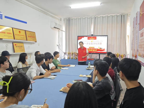 在湖北科创学院(隆中),宣讲团成员马子豪结合学科专业特色和个人学习心得,阐述了关于进一步全面深化改革的战略部署,号召同学们深入了解科技创新的重要性,主动投身创新创业活动,提升专业实践能力。