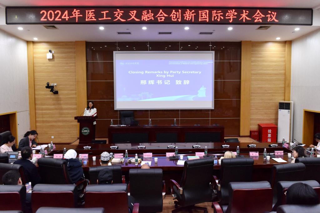 闭幕式上,学校附属襄阳市中心医院党委书记邢辉教授致辞。邢辉表示,此次会议的召开,对拓展学术视野、深化合作交流、推动医工交叉融合发展发挥了重要作用,与会专家贡献了宝贵智慧,希望通过跨学科理论和技术的融合发展,促进成果转化应用,创新地解决临床实际问题,进一步提升区域医疗服务水平。