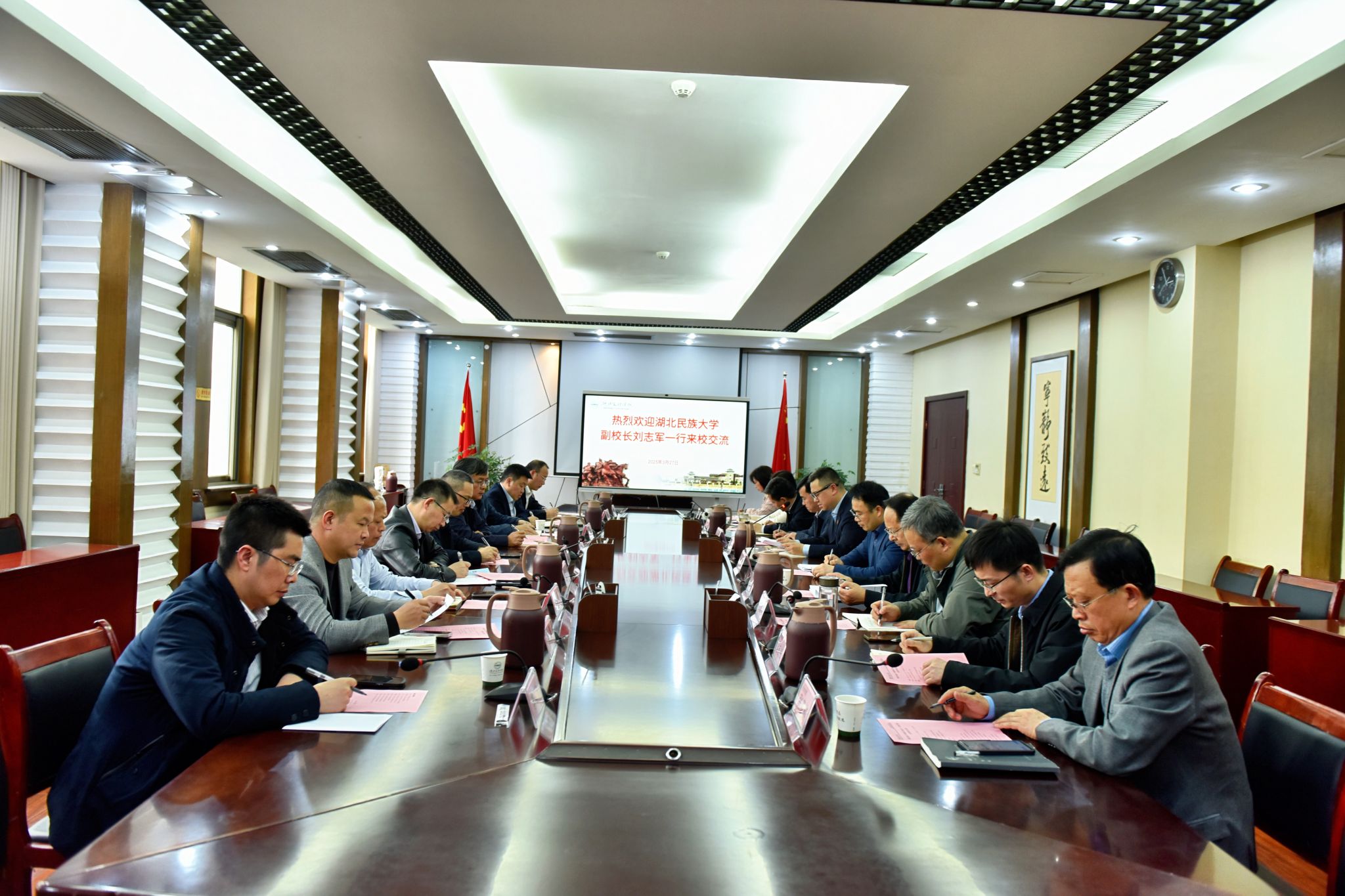 (科发院 通讯员 马陆杰 张彦林)3月27日,湖北民族大学党委常委、副校长刘志军一行来校调研交流。学校党委常委、副校长杭波接待刘志军一行,双方进行座谈交流。