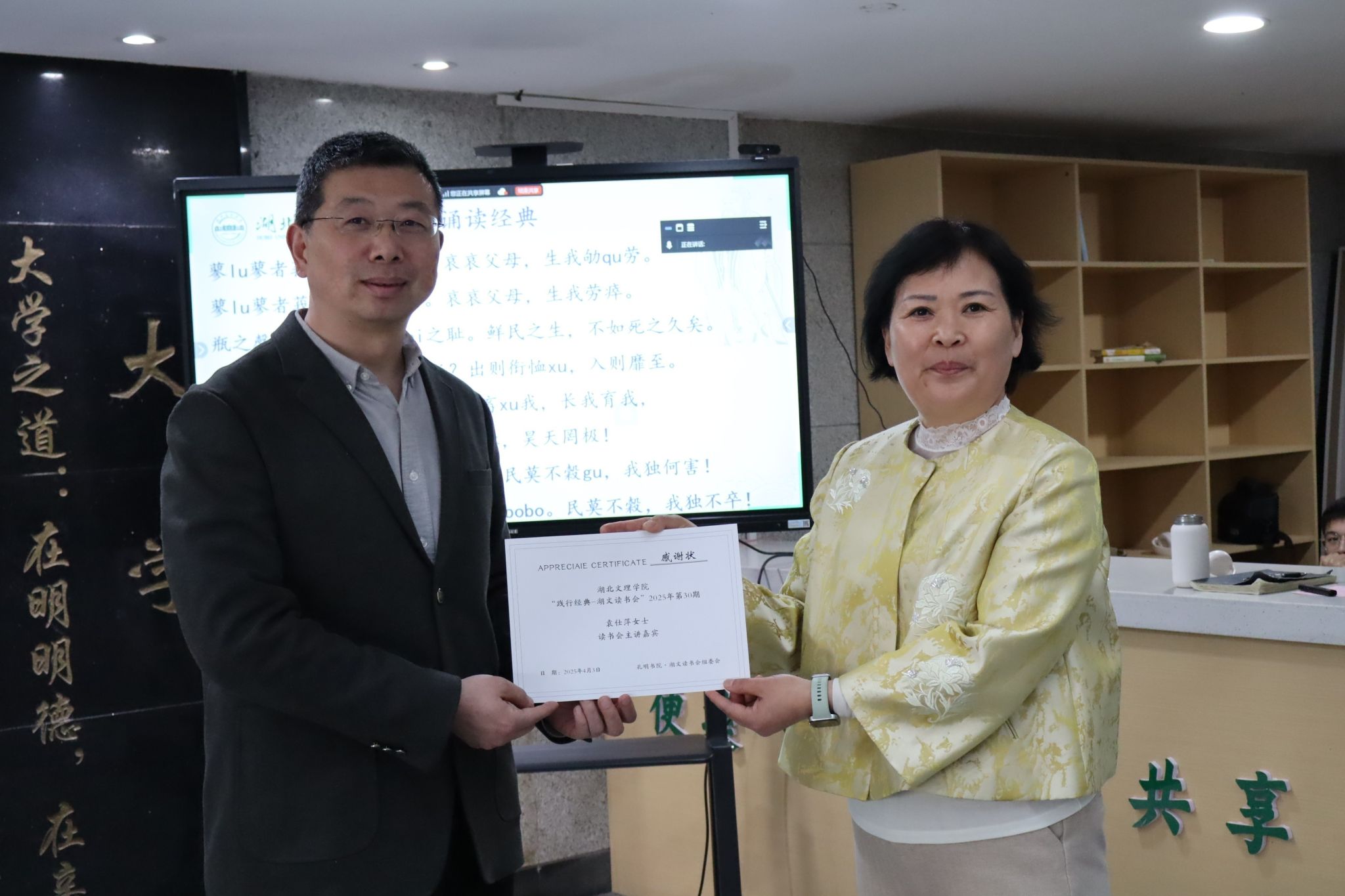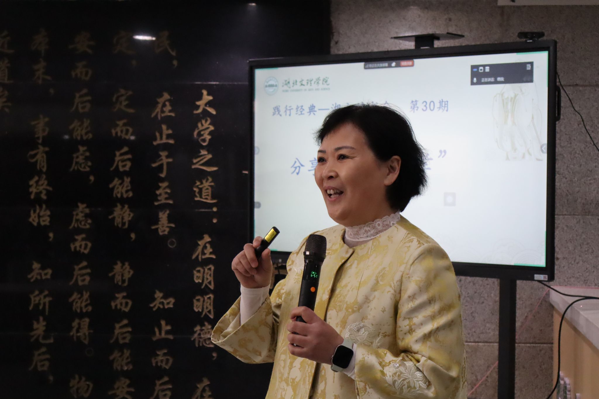 (襄阳历史文化研究院•汉江研究院 通讯员 熊文斌)4月3日下午,湖文读书会第三十期在图书馆二楼德园举行,学校文传学院袁仕萍教授以“孝”为主题作经典导读分享。学校党委书记吴超仲线上参加读书会。读书会由襄阳历史文化研究院·汉江研究院副院长王翔主持。