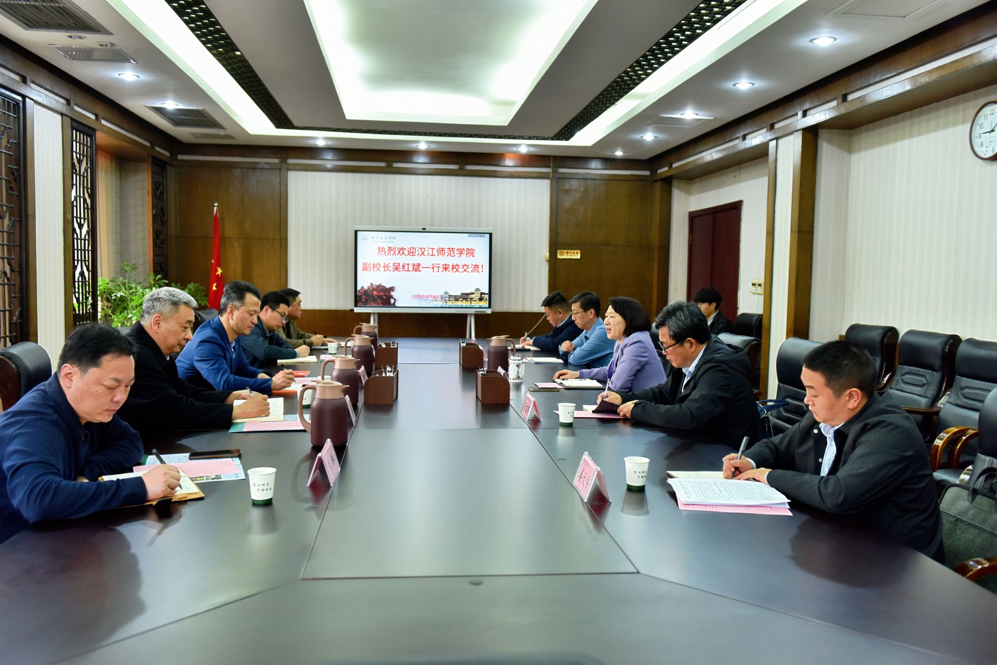 (继续教育学院 通讯员 郭想)4月9日上午,汉江师范学院党委常委、副校长吴红斌一行来校调研交流。学校副校长汪云接待吴红斌一行,双方围绕本科教育教学、学生工作、学科专业建设以及继续教育等开展座谈交流。