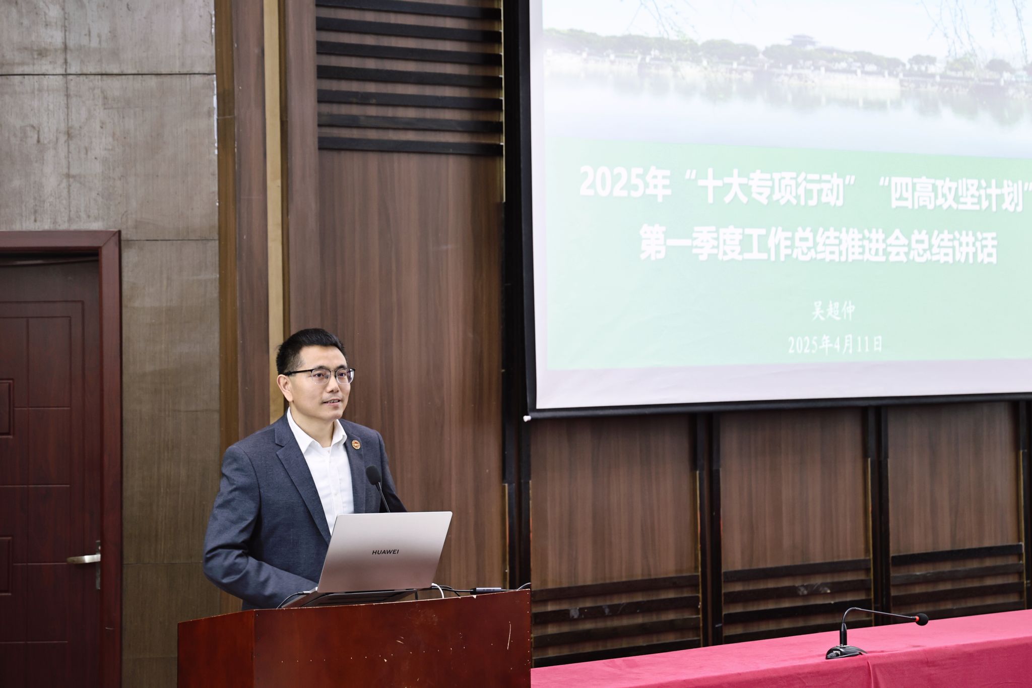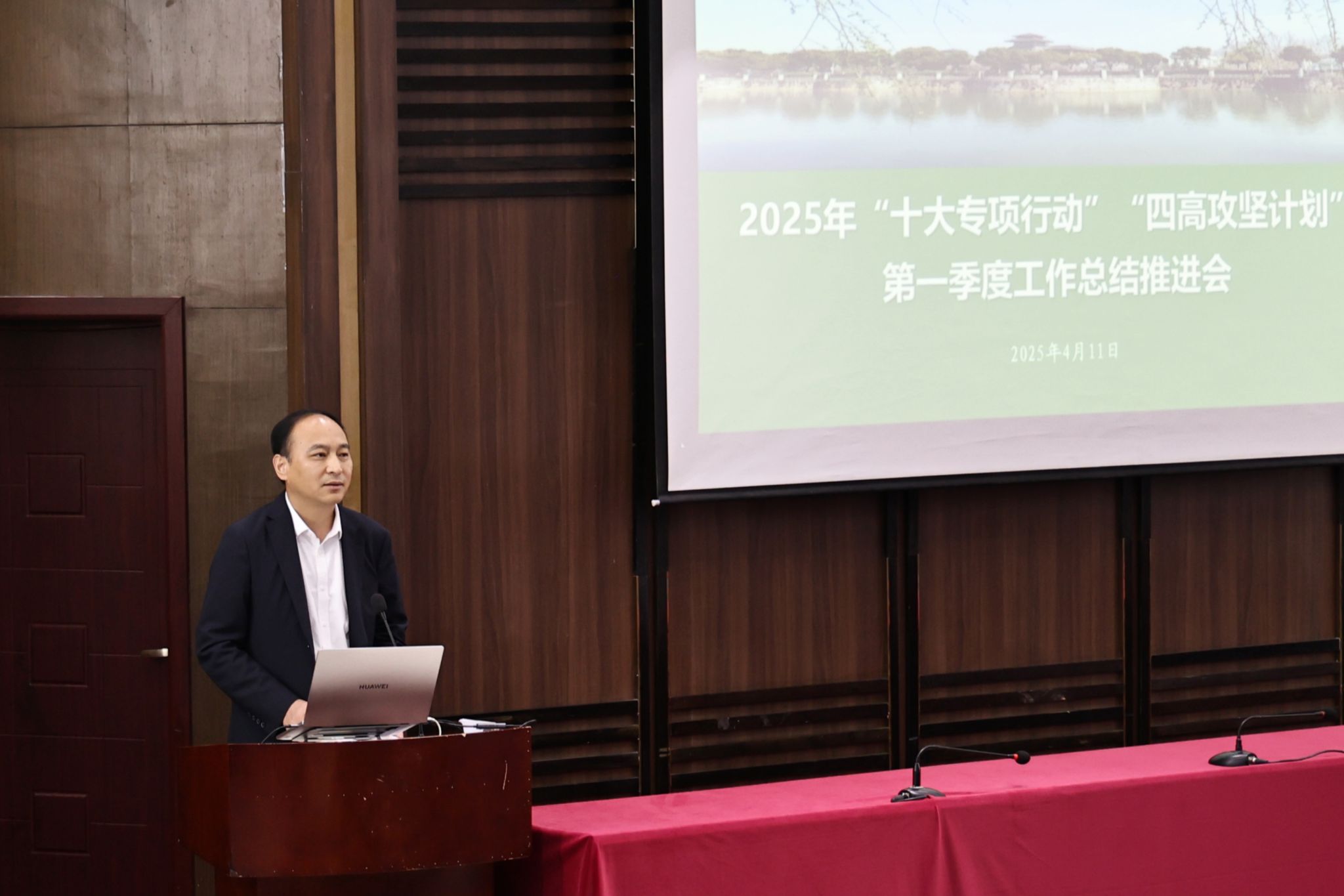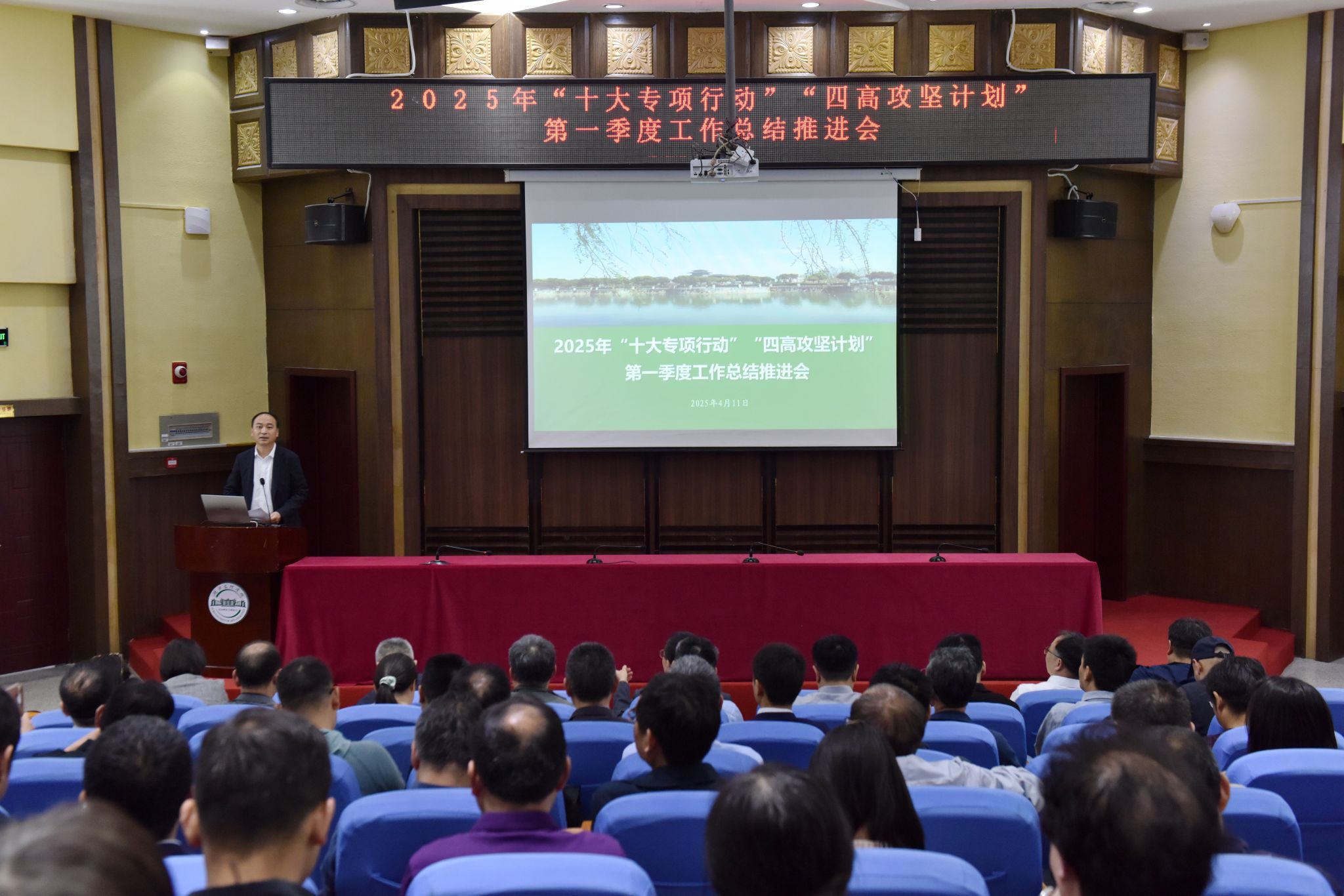 (发展规划与质量监测处 通讯员 向正权)4月11日上午,学校召开2025年“十大专项行动”“四高攻坚计划”第一季度工作总结推进会,学校党委书记吴超仲作总结讲话,全体校领导、全体中层干部、教师代表参加会议。会议由校长杜国锋主持。