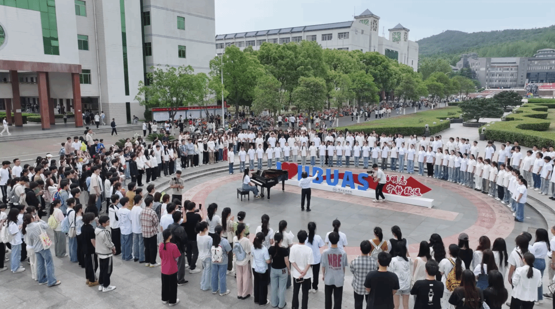 校团委联合音乐与舞蹈学院举行“声动青春 美育交响”合唱快闪活动,千余名青年学子合唱《世界赠予我的》《光荣啊,中国共青团》,展现出新时代湖文青年昂扬向上的精神风貌。