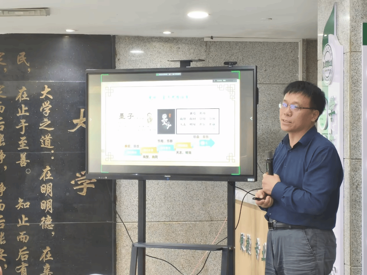在感悟经典环节,高其文聚焦先秦诸子经典,系统梳理不同学派关于“爱”的深刻论述。在儒家经典中,高其文援引《论语》“樊迟问仁,子曰‘爱人’”,阐释孔子以“仁”为核心的仁爱观,强调“孝悌”是爱的起点,通过“忠恕之道”推己及人,形成“泛爱众而亲仁”的道德体系。他对比《孟子》的“爱有差等”与《墨子》的“兼爱”,指出墨家“视人之国若视其国”的无差等之爱,彰显了博爱济世的理想主义。谈及道家与法家,高其文解读《道德经》“贵以身为天下,若可寄天下;爱以身为天下,若可托天下”中的慈爱智慧,以及法家《韩非子》“爱多者则法不立”对爱与规则关系的理性审视。他还提及阴阳家、兵家等对“爱”的独特诠释,如惠施“泛爱万物,天地一体”的哲学境界,孙子“视卒如爱子”的治军之道,展现了国学经典中“爱”的多元维度。