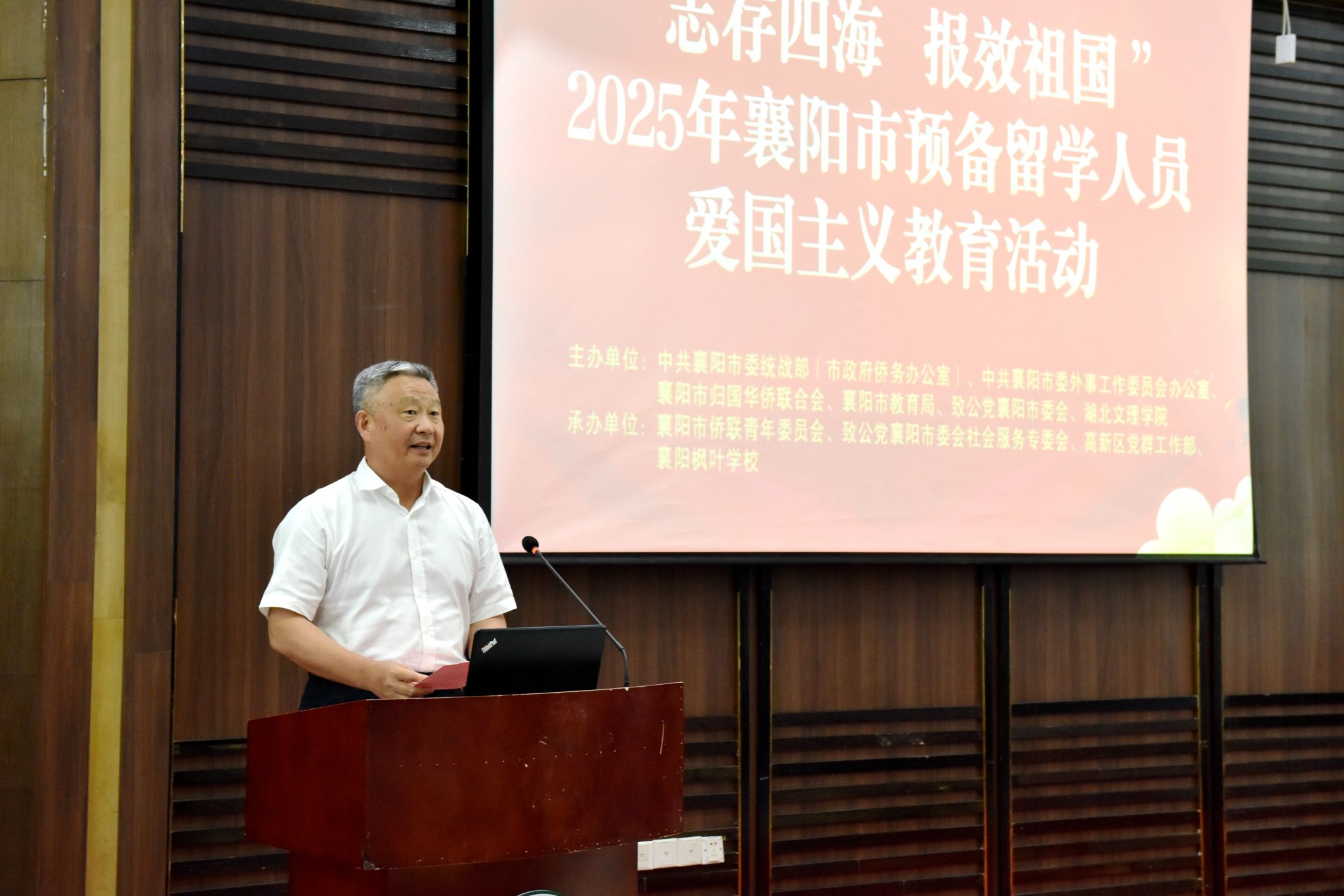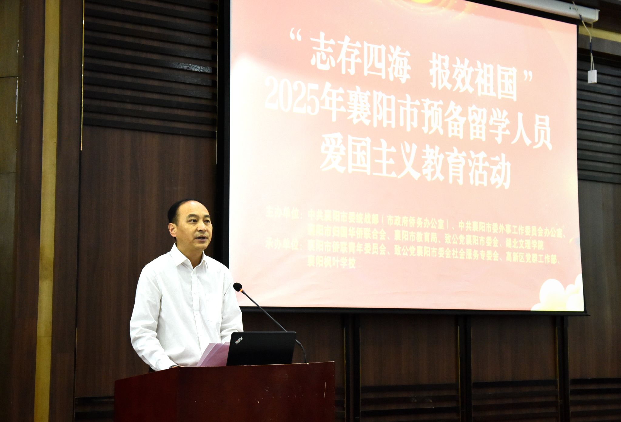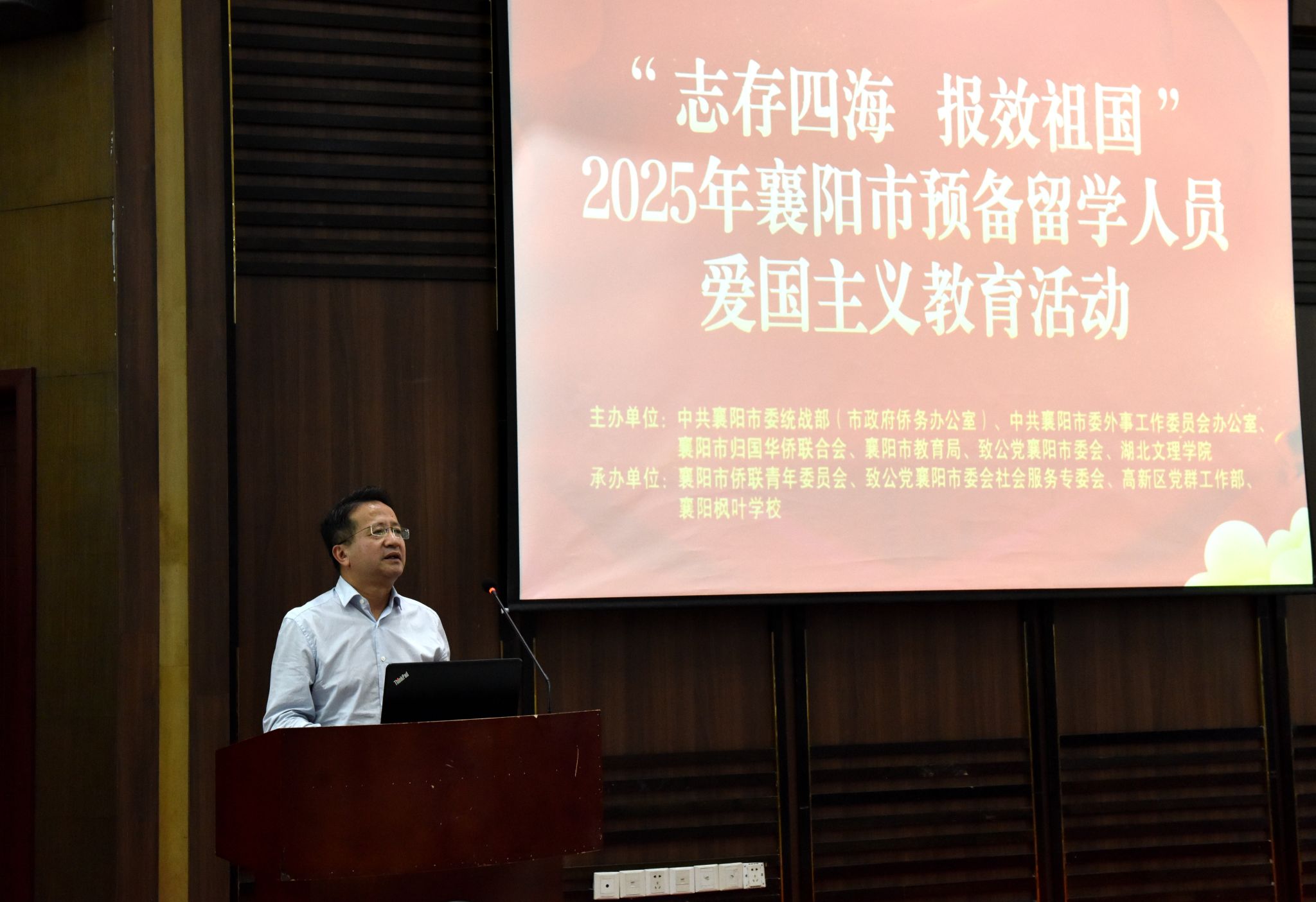 (新闻网记者 卜润慧)5月13日,襄阳市2025年“志存四海 报效祖国”预备留学人员爱国主义教育活动在学校举行,湖北省委统战部副部长江浩,襄阳市委常委、统战部部长伍义兵出席活动并讲话,校长杜国锋致欢迎辞。活动由致公党市委会主委金德安主持。
