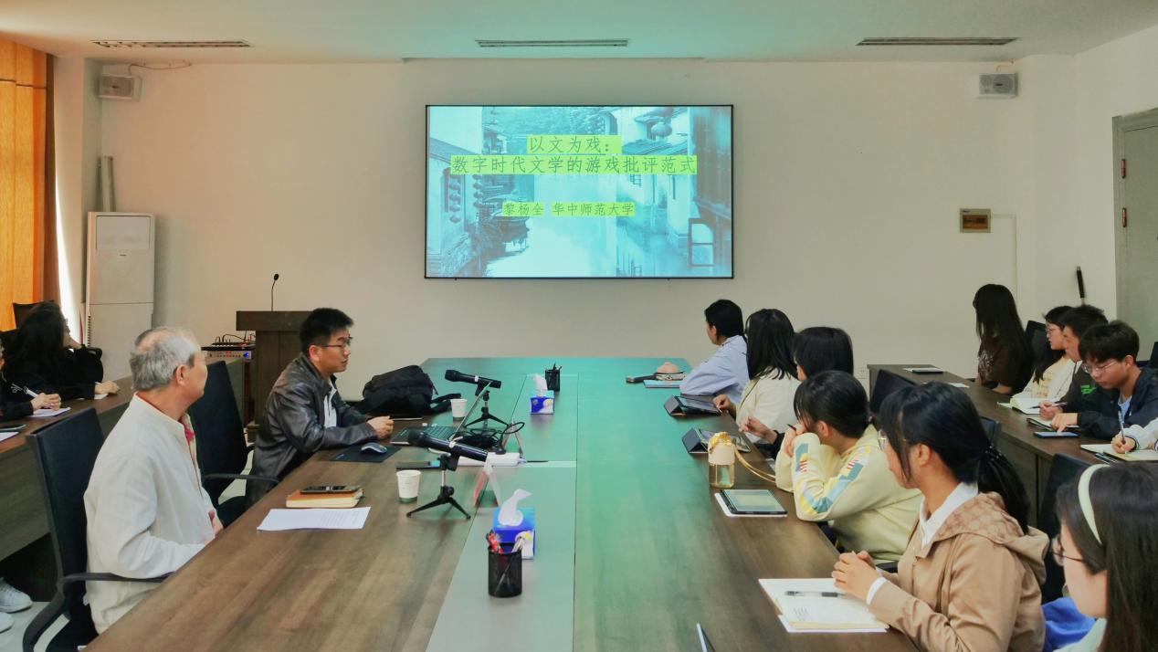 (文学与传媒学院 通讯员 易舒悦)4月14日上午,华中师范大学文学院教授、博士生导师、华中师范大学文学研究所所长黎杨全,应邀为文传学院研究生作题为《以文为戏:数字时代文学的游戏批评范式》的学术讲座。讲座由文传学院党委书记李定清教授主持。