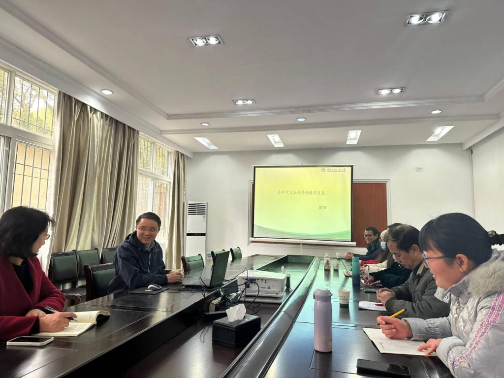 (外国语学院 通讯员 王林)12月1日下午,广东外语外贸大学高级翻译学院蓝红军教授受邀为外国语学院教师作题为《谈研究方法与外语教师发展》的学术讲座。讲座由外国语学院副院长王林主持。