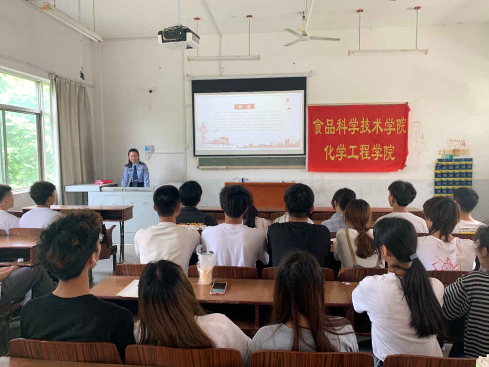5月27日下午,襄阳市监狱民警走进食品科学技术学院·化学工程学院开展“法治进校园为青春护航”主题宣讲活动,监狱团委书记周晨、监狱心理教育部门主任周小溪为同学们普及法律知识,告诫同学们时刻保持清醒,提高明辨是非的能力,增强法治意识。(食品·化工学院 通讯员 包静)