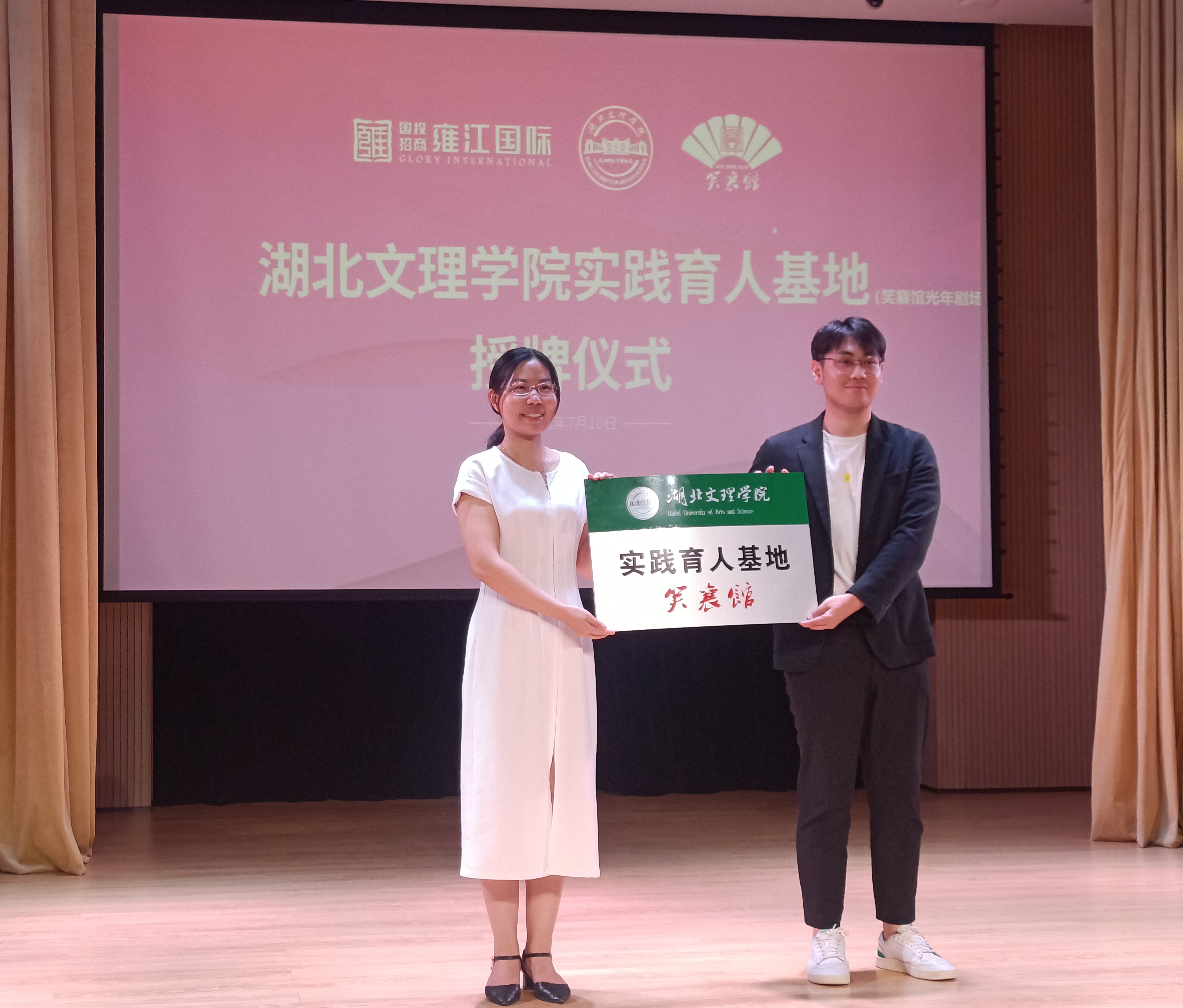 7月10日,我校文传学院与襄阳市笑襄馆实践育人基地授牌仪式在襄阳市时光国际艺术中心举行。时光国际艺术中心运营经理丁祺俊与校团委副书记龚丽丽共同为实践育人基地授牌。文传学院党委副书记刘忠东表示,学院社团三顾艺苑与笑襄馆联系密切,学生在社团中发掘兴趣,熏陶培养。笑襄馆实践育人基地的建立,标志着双方在人才培养、实践创新等方面的合作将更加全面深入。(文传学院  通讯员  陈小密)