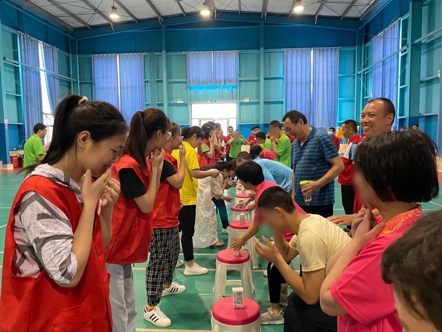 活动设置了“足式保龄球”、“二龙戏珠”、“齐心协力”、“抢水瓶道具”等多项趣味运动项目,近20名残疾朋友在家人、社区工作者、大学生志愿者的陪同引导下,参与体育运动。这些运动从不同方面锻炼残疾人动手、动脑、手眼协调能力,通过趣味比赛、团队合作运动等项目,让他们到运动的快乐。