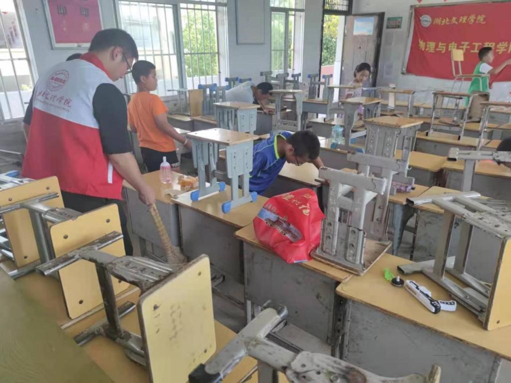 7月16日至7月25日,物理与电子工程学院“七彩假期”活动深入红色革命老区老河口市袁冲乡开展志愿服务活动。志愿者们从思想引领、科普实验、课业辅导、手工制作等四个方面入手,结合当地的红色革命精神给小朋友们开展红色文化宣传教育活动,结合生活实际带领孩子们探索生活中的物理现象,辅导孩子们的暑期课业,除此外,还结合传统文化开展剪纸、折纸等手工课。、