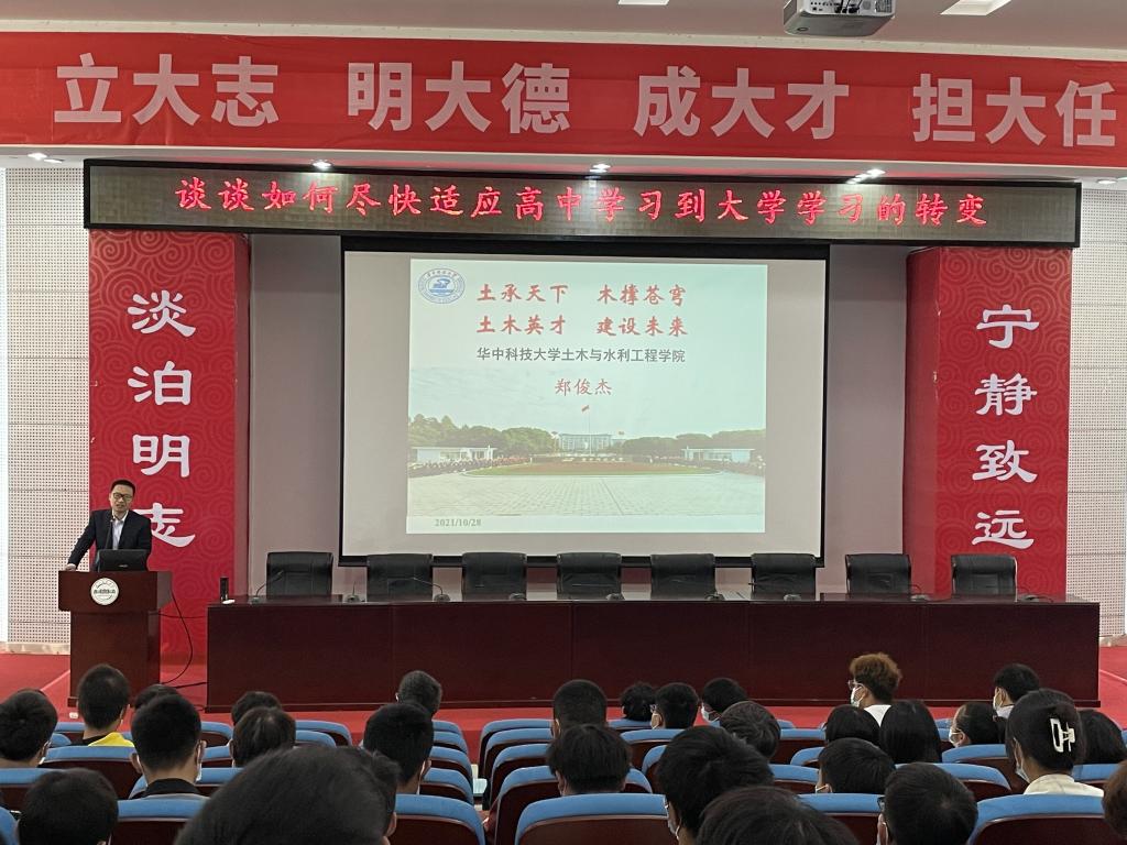 10月28日下午,华中科技大学教授、长江学者郑俊杰为土建学院大一学生作题为《如何尽快适应高中学习到大学学习的转变》的报告。郑俊杰结合自己的教学经历,告诫同学们“规划好自己大学生活”的必要性,提醒同学们应该从大一开始制订明确目标,保持高中阶段的自律,远离手机游戏,多参加体育活动、社团活动,丰富自己的大学生活,努力成长为一个对国家,对社会有用的复合型人才。(土建学院 通讯员 刘雨荷;审核:弋兵;责编:卜润慧 余芳)