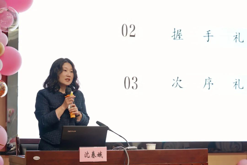 (文传学院通讯员吴耀龙)3月8日,襄阳市总工会开展了庆“三八”特别活动暨2023年全市新就业群体女工干部培训班,文学与传媒学院副教授、高级礼仪培训师沈春娥受邀为学员作公务礼仪培训。沈春娥从公职人员的形象礼仪、握手礼仪、名片礼仪、次序礼仪等方面对公务礼仪的特殊性作详细讲解。
