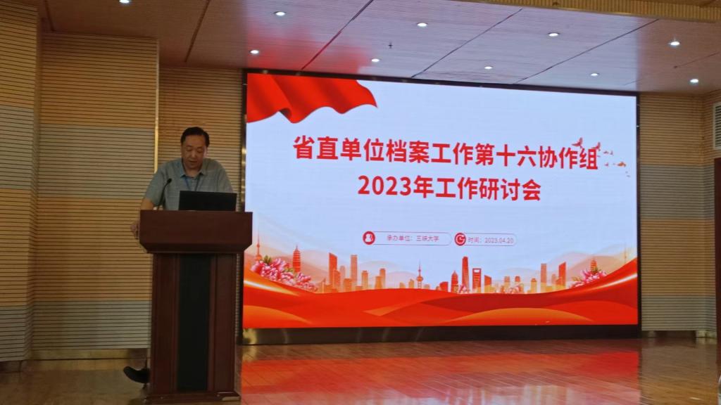 (档案馆 通讯员 谢菲)4月19-21日,省直单位档案工作第十六协作组2023年工作研讨会在三峡大学召开,校档案馆馆长熊华山带馆内工作人员一行七人参加会议,副研究馆员胡鹏飞作为第十六协作组唯一获评2018-2022年度全省档案工作先进个人,在会上作交流发言。