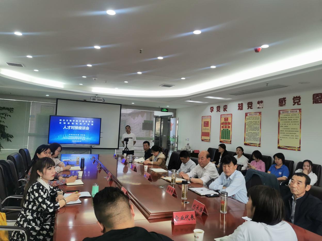 活动期间,双方召开人才对接座谈会。会上,谷城县商务局副局长邬培红介绍了谷城县电商产业园的企业数量、规模、发展历程和毕业生在园事业发展的情况,重点就产业园对毕业生素质能力的需求进行了交流。城关镇镇长马超介绍了谷城县“千名带货网红人才培育”和“千名跨境电商人才培育”计划。王林介绍了外国语学院的学科发展、人才培养等主要情况,张婷婷介绍了学院近3年学生就业的整体趋势,并与华夏创谷电子商务有限公司等10家企业就深化校企合作、拓宽就业渠道、拓展就业岗位、开展实习实训、加强就业指导等方面进行深入交流。