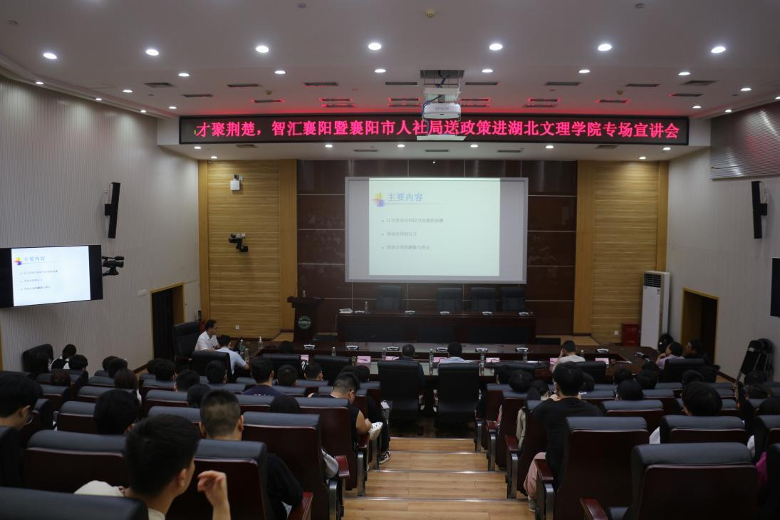 (计算机工程学院 通讯员 李小华)为持续扩大人才新政的宣传覆盖面,提高人才留襄就业率,提升在校大学生对襄阳人事人才相关政策的掌握程度,助力襄阳引才留才。5月25日晚,襄阳市人社局送政策进高校专场宣讲会在湖北文理学院图书馆一楼多功能厅举行。宣讲会由计算机工程学院党委副书记李小华主持。