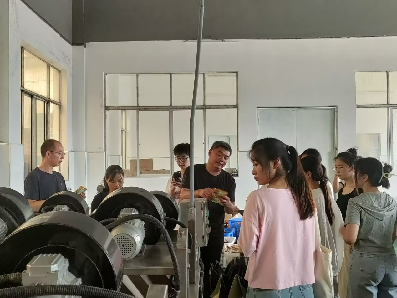 (食品·化工学院 通讯员 豁银强)7月8日,食品·化工学院吴进菊博士、豁银强博士带领淀粉质健康食品团队部分学生前往襄阳孔明菜食品科技有限公司开展生产技术指导和技术攻关服务。公司总工程师李玉庆对师生一行的到来表示欢迎,并向师生介绍了公司的状况和生产中遇到的技术问题,带领师生实地考察了公司的包装鲜湿牛肉面和即食大头菜生产线。