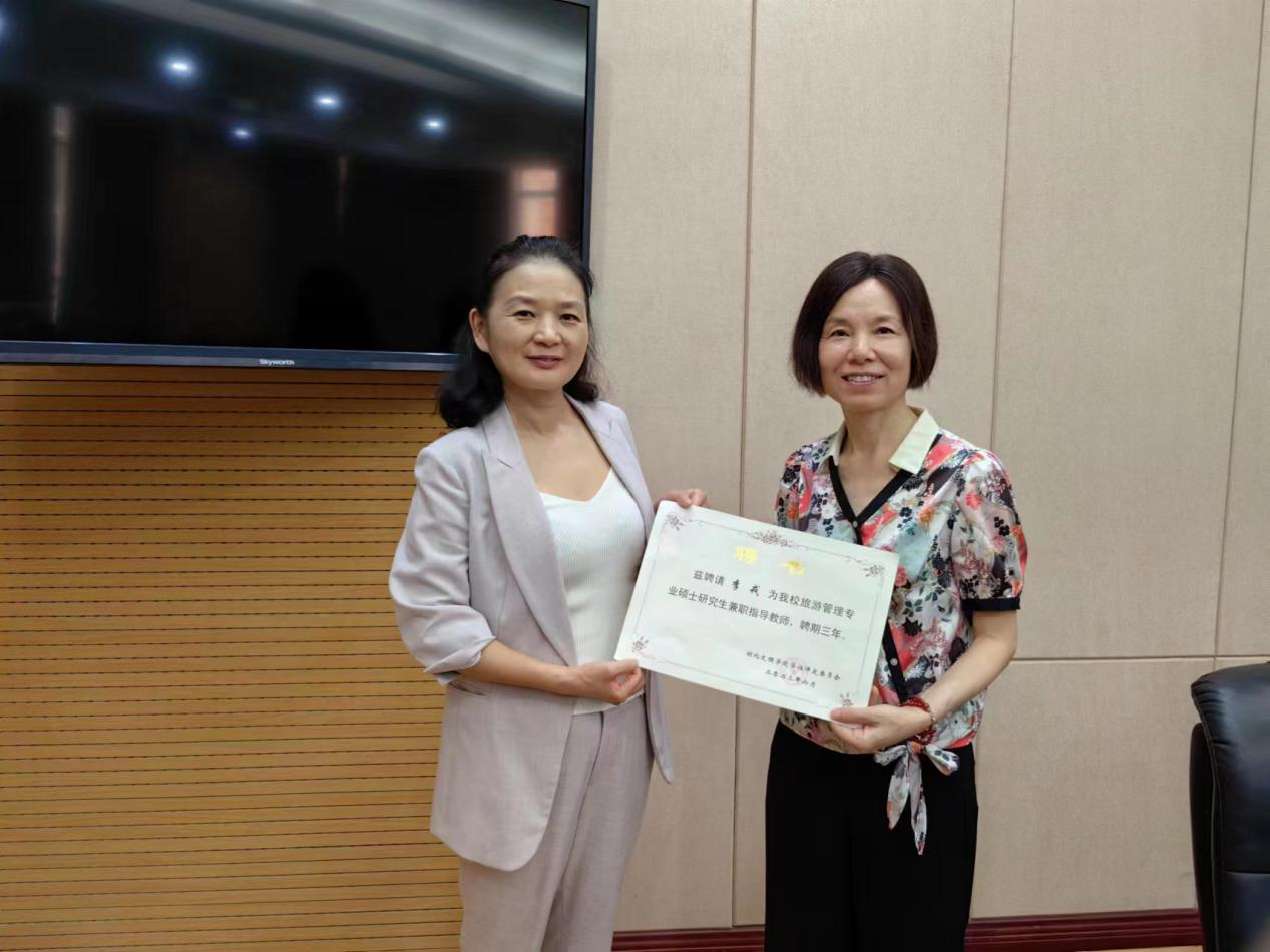(资环学院 通讯员 朱运海)7月20、21日,研究生处处长梁英带队走访襄阳市自然资源和规划局、襄阳市水利规划设计院有限公司,座谈交流旅游管理硕士研究生联合培养,并为校外兼职导师颁发聘书。研究生处副处长刘俊杰、资源环境与旅游学院副院长朱运海、mta教育中心执行主任王天天、mta校外导师代表等参与聘任仪式。