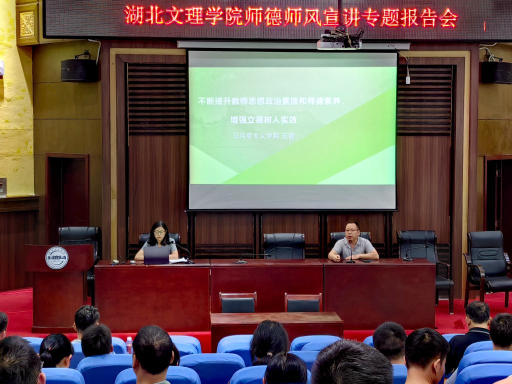(人事处 通讯员 姚璐璐)9月7日下午,湖北文理学院“师德师风宣讲报告会”在行政楼一楼报告厅举行。马克思主义学院王丽博士给教师们做了题为“不断提升教师思想政治素质和师德素养,增强立德树人实效”的专题报告,此次报告会是学校“师德师风建设月暨宣教月活动”师德宣教重要的内容之一,也是新进教师校本培训的第一讲。2023年新进教师和学校部分教师160余人参加报告会。