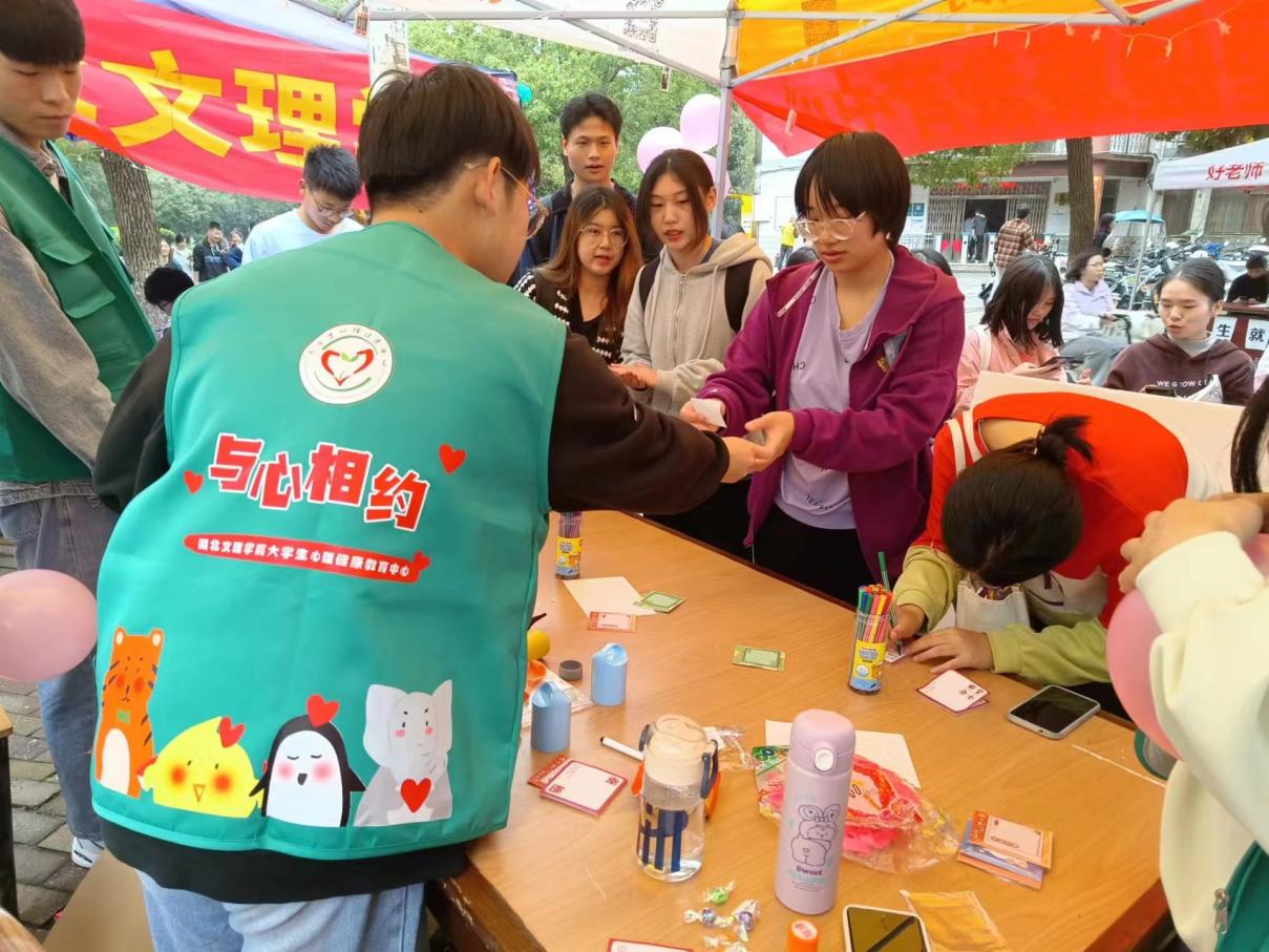 10日中午,大学生心理健康中心在北区学生宿舍区开办了心“晴”杂货店,开展“心语心愿”压力释放、“心知新识”知识竞答、“随心而动”丢沙包游戏等活动,500多名学生在活动中释放压力。