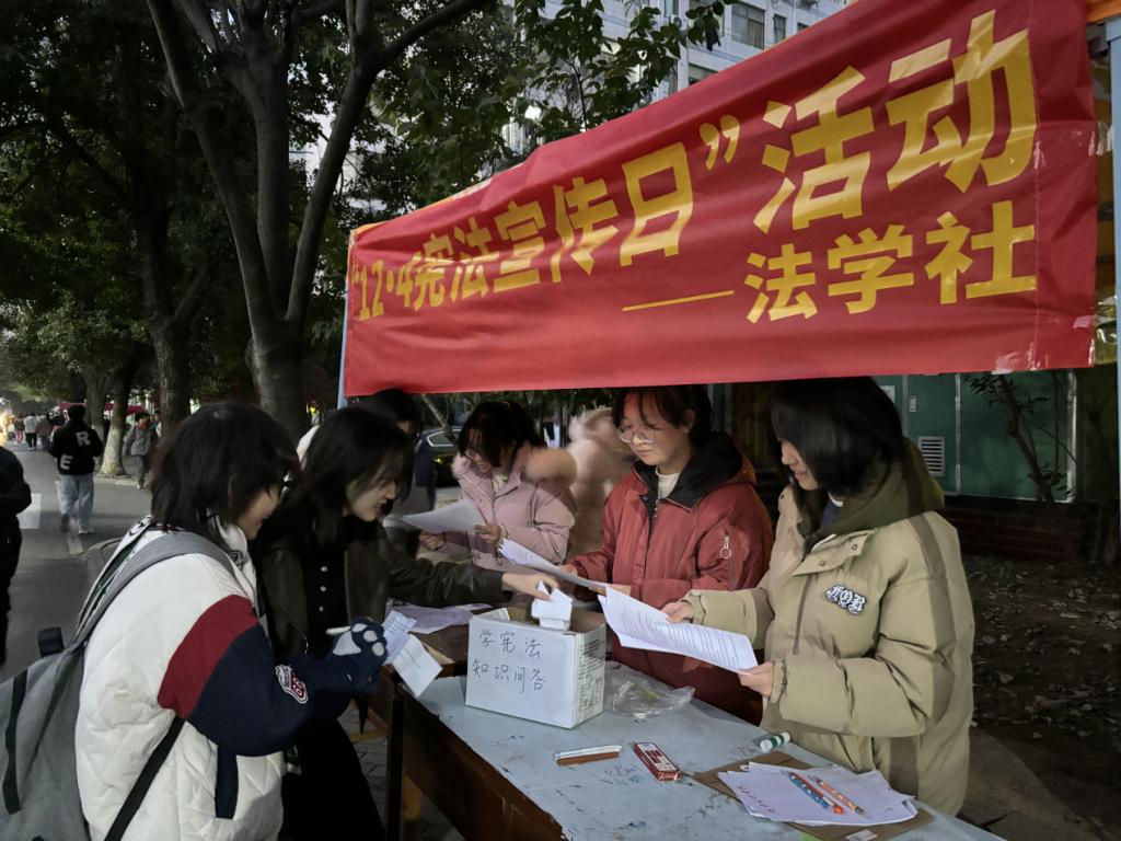 (政法学院 通讯员 李雨缦)2023年12月4日是第十个国家宪法日,当天,政法学院法学社开展以“大力弘扬宪法精神建设社会主义法治文化”为主题的宪法日宣传活动。