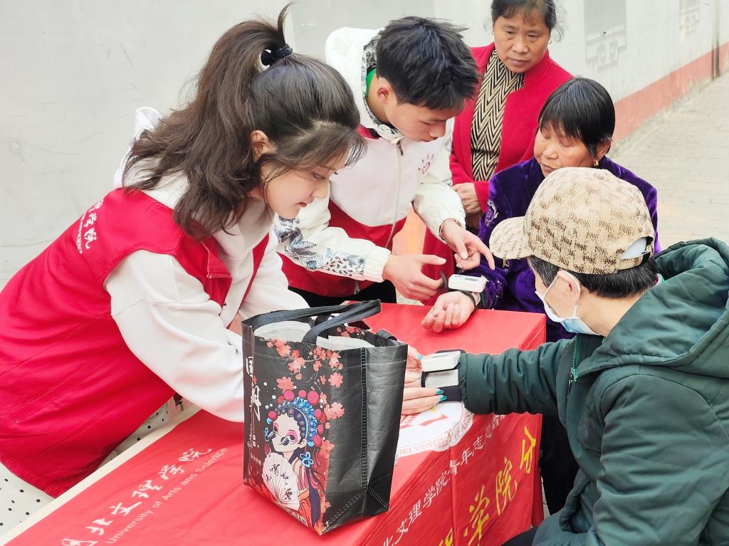 现场,队员们熟练地运用血压计为老人们监测血压,并以测量结果为参考,围绕疾病诱因、血压正常标准、缓解方法等问题讲解如何科学的强身健体,加强老人们对疾病预防知识的了解。