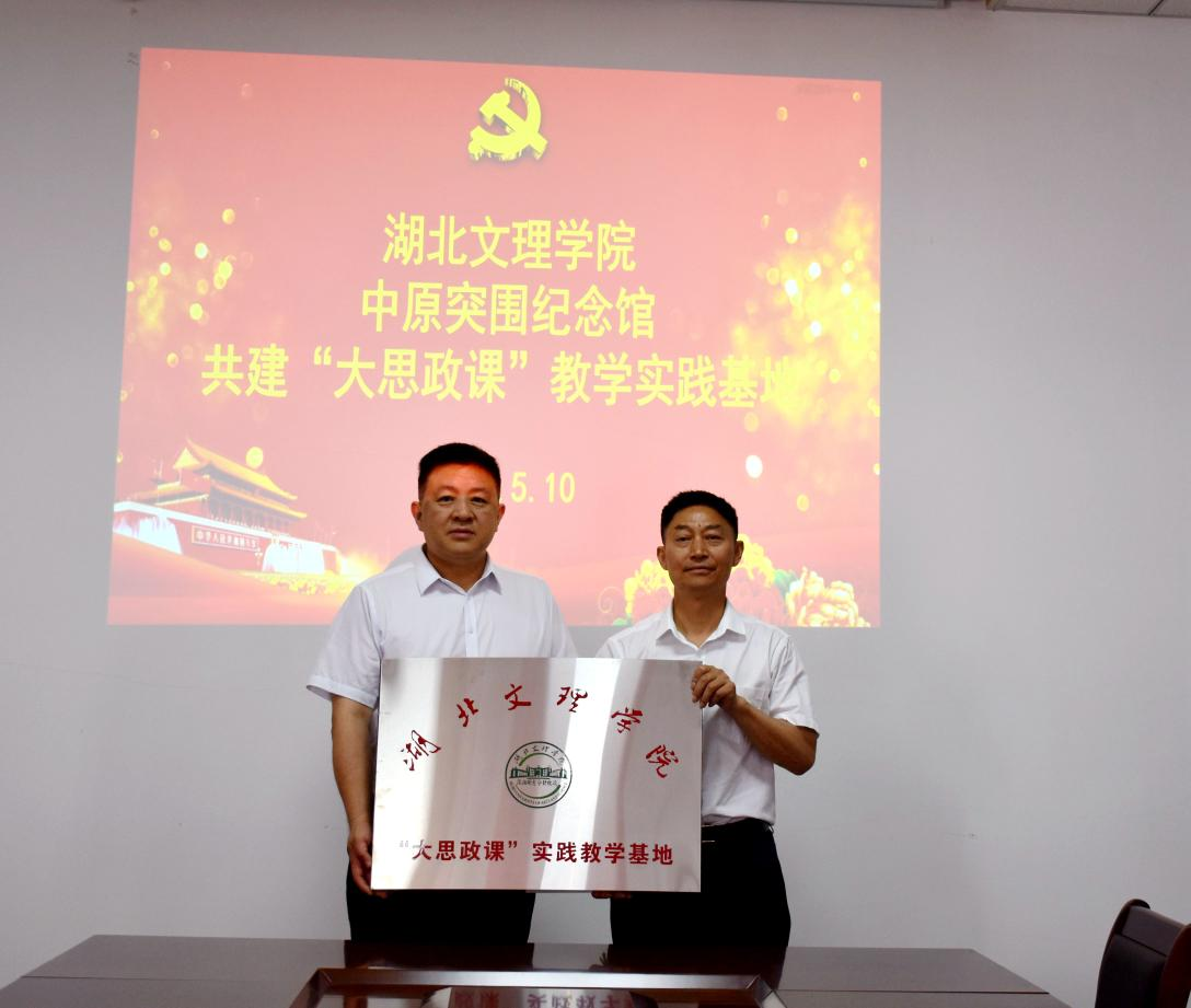 (马克思主义学院 通讯员 李晗)5月10日,马克思主义学院与中原突围纪念馆开展举行共建“大思政课”实践教学基地签约及挂牌仪式。马克思主义学院院长王奎与中原突围纪念馆馆长王炳文签订了结对意向书,共同为实践教学基地揭牌。