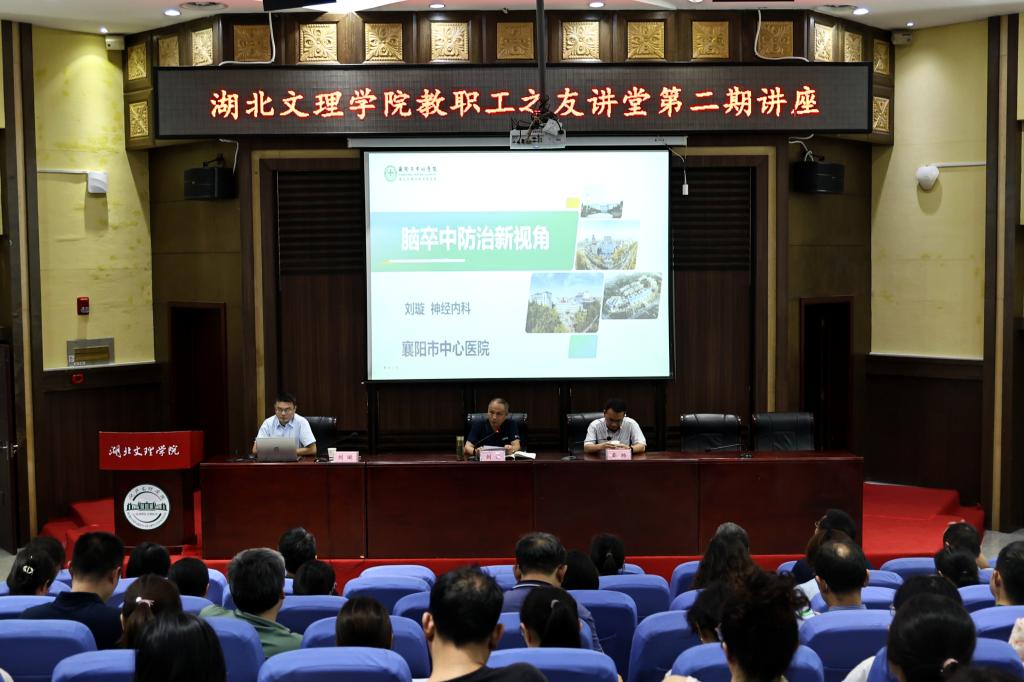 (工会 通讯员 张全娥)6月18日,学校工会教职工之友讲堂举行第二期“关爱教职工健康校园行”健康讲座,邀请学校附属襄阳市中心医院神经内科副主任刘璇和甲状腺乳腺外科主治医师晏玮开展科普宣讲,近200名教职工参加讲座。讲座由学校工会常务副主席刘浩主持。
