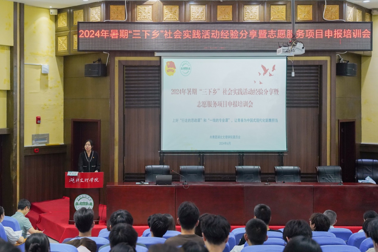 (校团委 通讯员 唐棻 秦东阳)6月28日下午,学校举行2024年暑期“三下乡”社会实践活动经验分享暨志愿服务项目申报培训会。培训会由学校团委书记龚丽丽主持。