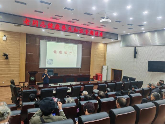 离退休工作处邀请体育学院教师王红俊为老同志们举办了“健康知行——老年人健康养生知识”专题讲座。王红俊从合理膳食、适度运动、保持乐观心态等方面,告诉大家如何增强免疫力,收获健康圆满人生;还手把手向老同志们传授日常运动小技巧,以保持适度运动,缓解身体不适。