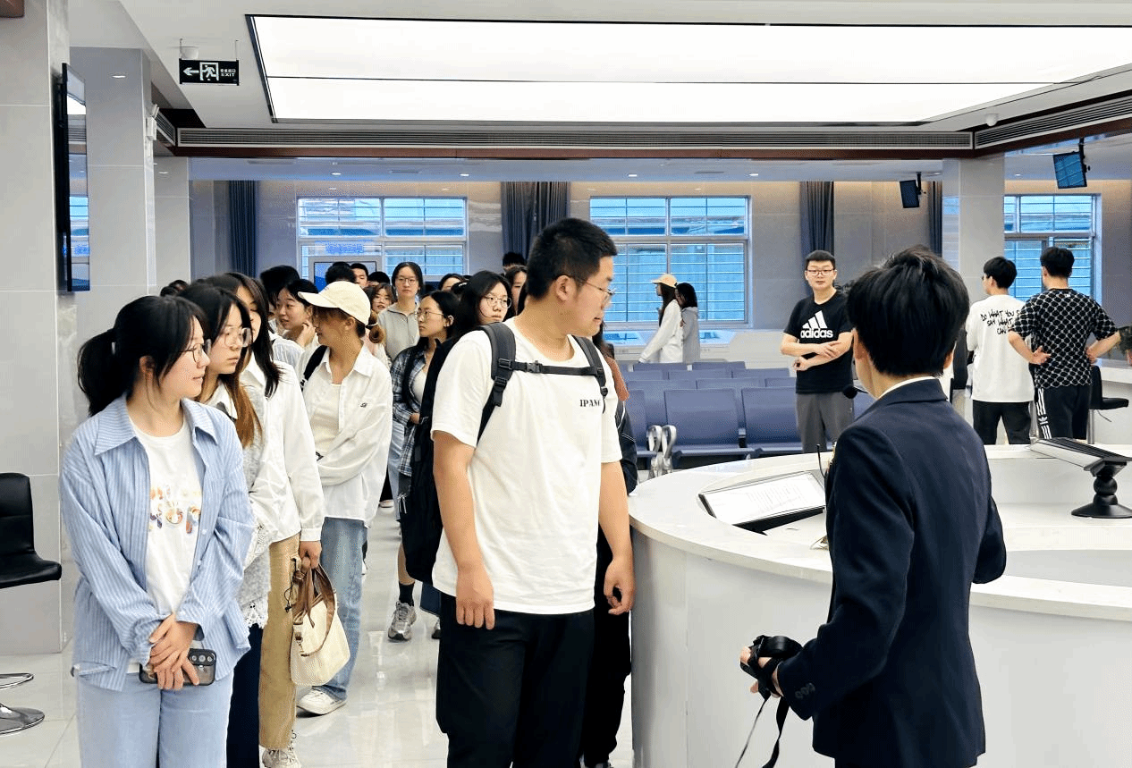 庭审结束后,法院工作人员带领学生参观诉讼服务大厅,详细讲解立案、信访、执行等窗口的职能分工,着重介绍了“智能查询”系统,讲解了目前法律职业数字化转型趋势,以及法学教育同数字法治实践的发展方向。