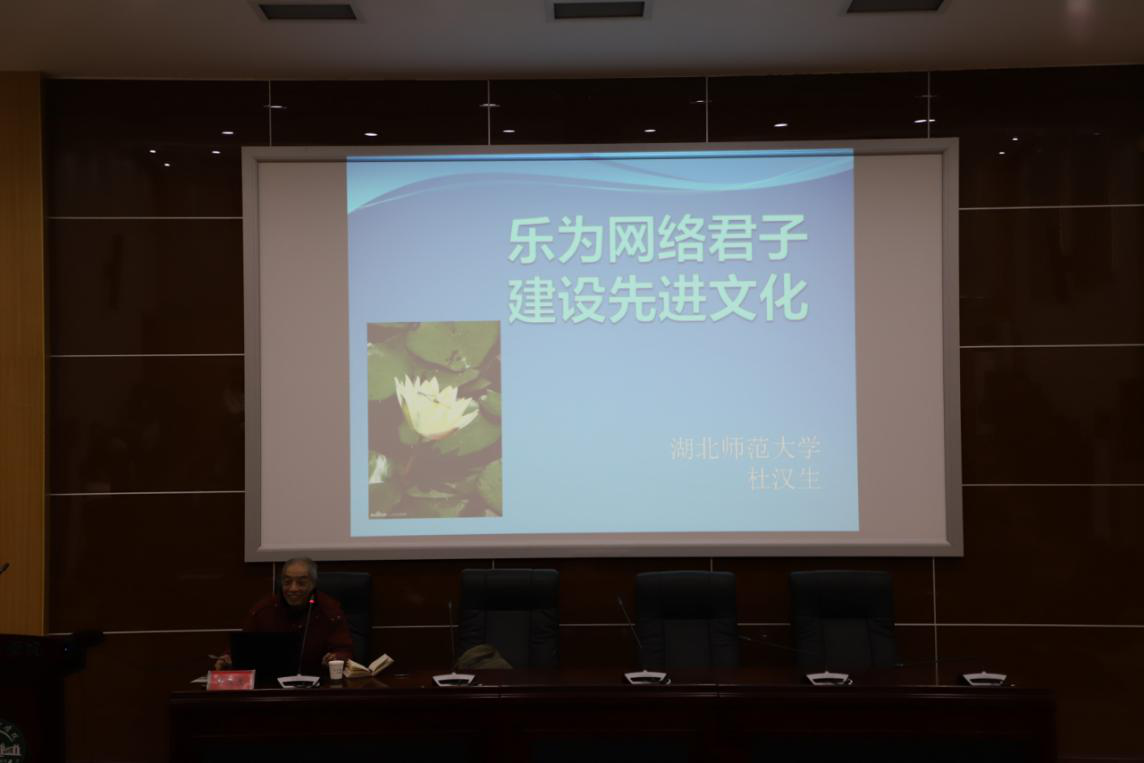 (通讯员李容)12月18日下午,由教育学院承办的“草庐讲堂”活动在宁静楼多功能报告厅举行,湖北师范大学杜汉生教授应邀为教育学院学生作题为《乐为网络君子,建设先进文化》的专题报告。