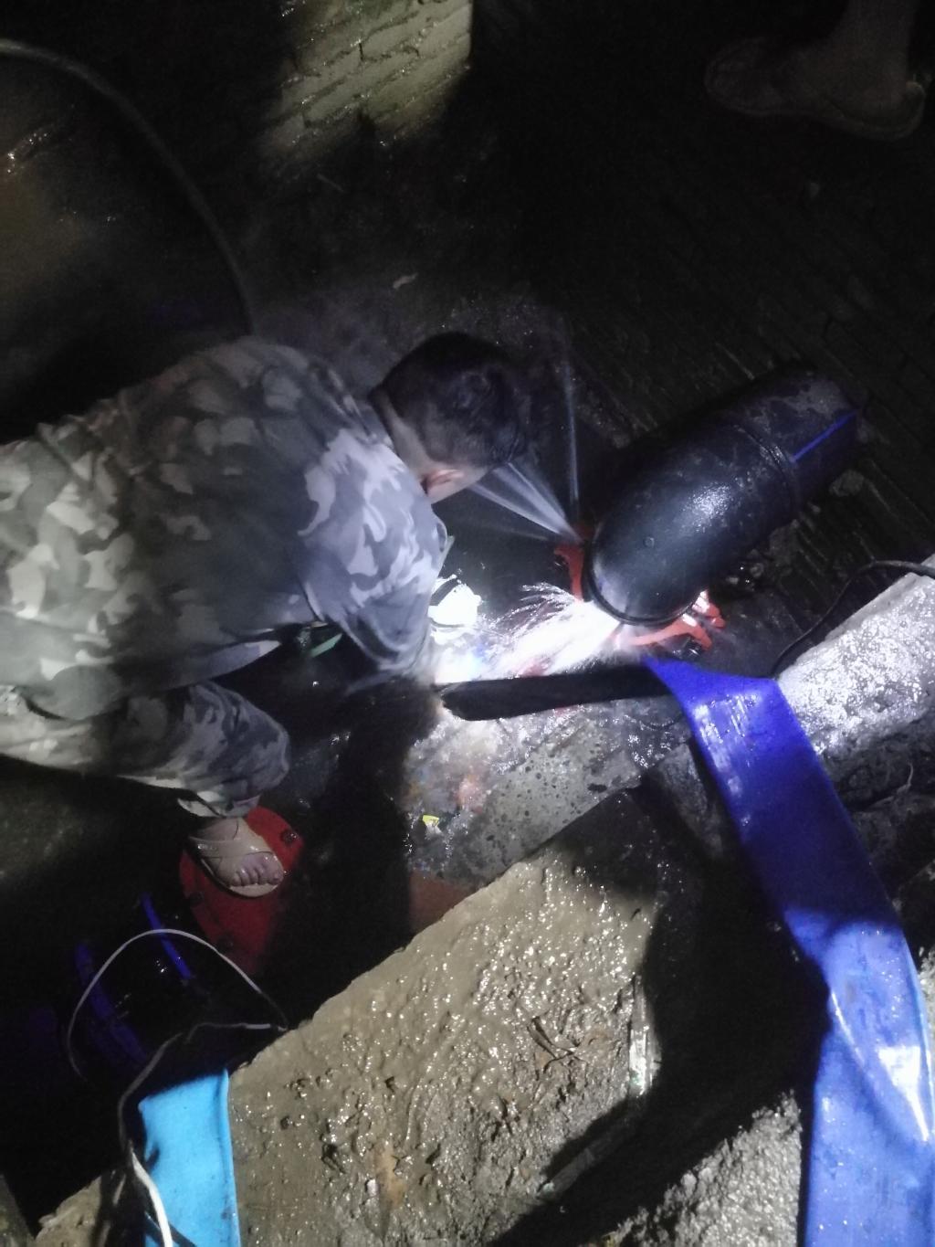 学校大门口主水管直接关系全校正常供水,更关系到第二天近两千人参加的专升本考试,险情就是命令,不到半个小时,后保部水电科8位同志全部赶到现场,找来泵机,架起照明,挖开坑道,迅速查找爆裂位置,多方联系供应商运送配件。大家相互协作,确定抢修方案,轮流下坑作业,顶着蚊虫叮咬,不顾污水满身,经过3个多小时的努力工作,终于在28日凌晨1点半完成抢修任务。