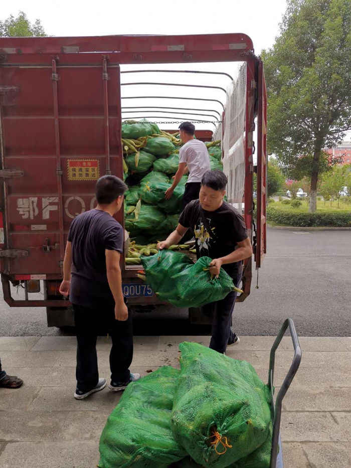 (扶贫办 通讯员 冯明毅)第36个教师节来临之际,学校教职员工收到了一份特殊的礼物——扶贫村高山玉米。9月9日上午9时许,2万余斤新鲜玉米从学校定点扶贫村保康县歇马镇合作村运送到学校,分发到每位教职员工手上。