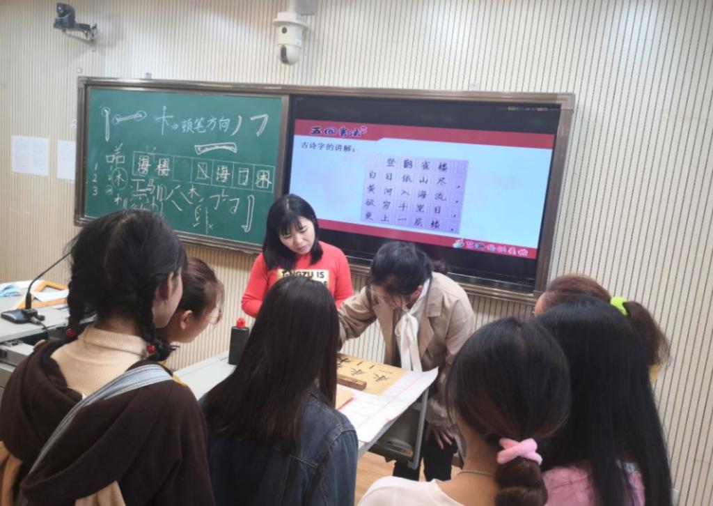 (教育学院 通讯员 王炜 谢岭)为了提高我校学生粉笔字、钢笔字、毛笔字书写技能技巧,扎实推进“书香校园”创建活动,提升学生的传统文化素养。9月22日上午,教育学院邀请襄阳艺海扬帆美校书法老师冯小丽在n2-308教室做“三笔字”现场教学培训。