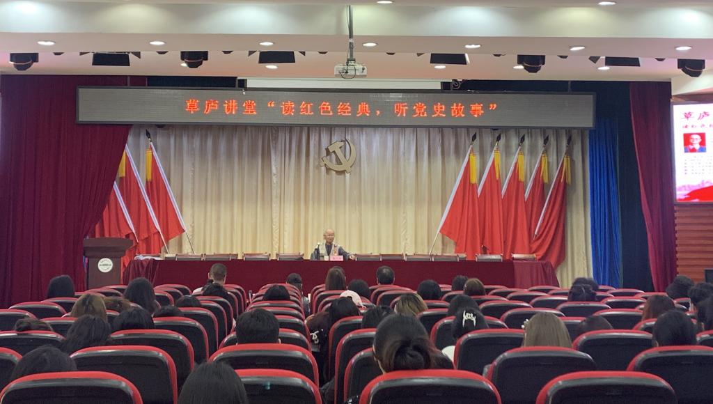 (音乐与舞蹈学院  通讯员  刘琰琰)4月22日下午,革命老兵鞠万坤做客草庐讲堂,为青年大学生带来了一场以“读红色经典,听党史故事”为主题的报告。