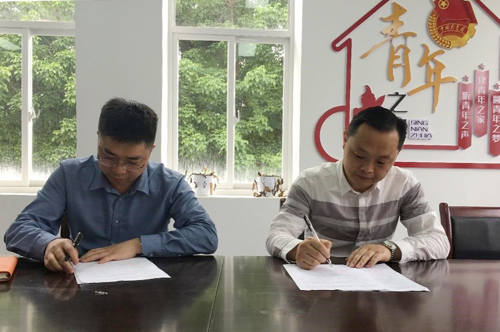 夏国锋与丁超代表双方签订实习实践基地共建协议书,并进行揭牌仪式。罗学莉与丁超代表双方签订了《襄阳市青年发展“十四五”规划研究》委托协议。