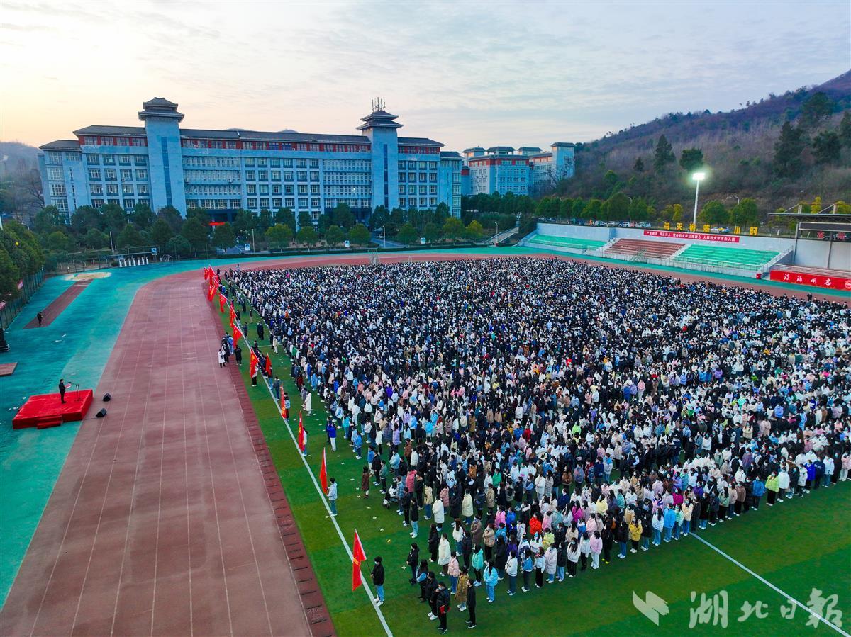 “伴着隆中山下、淡泊湖畔的春光,隆中路296号迎回了全体同学,确认过眼神,你们都是元气满满的湖文人!”2月20日晨6时50分,湖北文理学院万名师生举行庄严的新学期升旗仪式,校长张彦铎向全体师生们致以新春祝福。