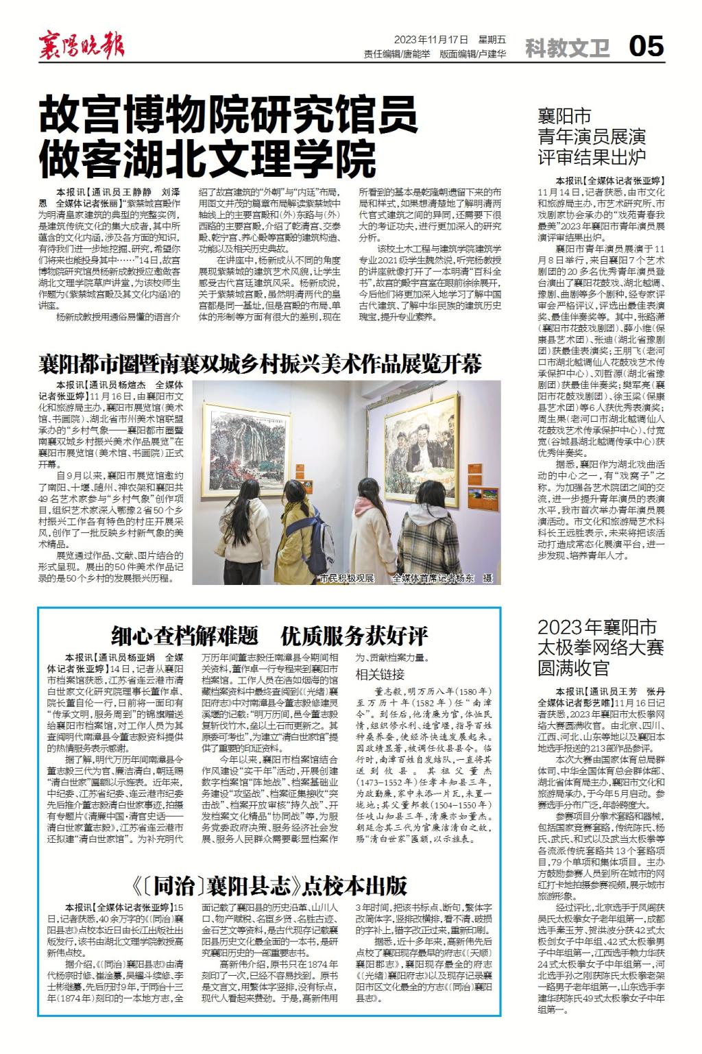 【襄阳晚报】故宫博物院研究馆员做客湖北文理学院