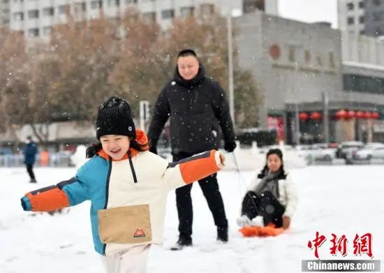 图为一家三口雪中玩耍。中新社记者 翟羽佳 摄