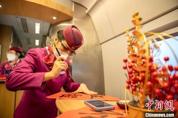 如果今天你还在旅途中奔波,没关系,高铁上也能体验别样“年味”。每年高铁的乘务员都会精心装饰车厢,旅客在乘务员的带领下踊跃参加丰富多彩的趣味活动,还能领取到纪念品,冬日的车厢内洋溢着祥和喜庆的节日氛围。