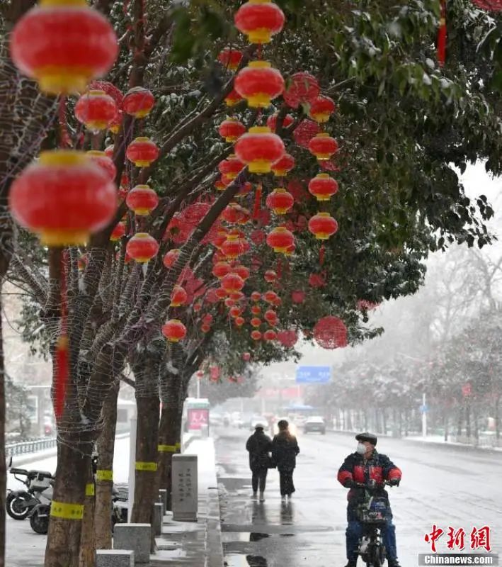 2023年1月14日,农历腊月二十三,中国北方小年,河北石家庄迎来2023年首场大范围降雪。图为市民雪中出行。中新社记者 翟羽佳 摄