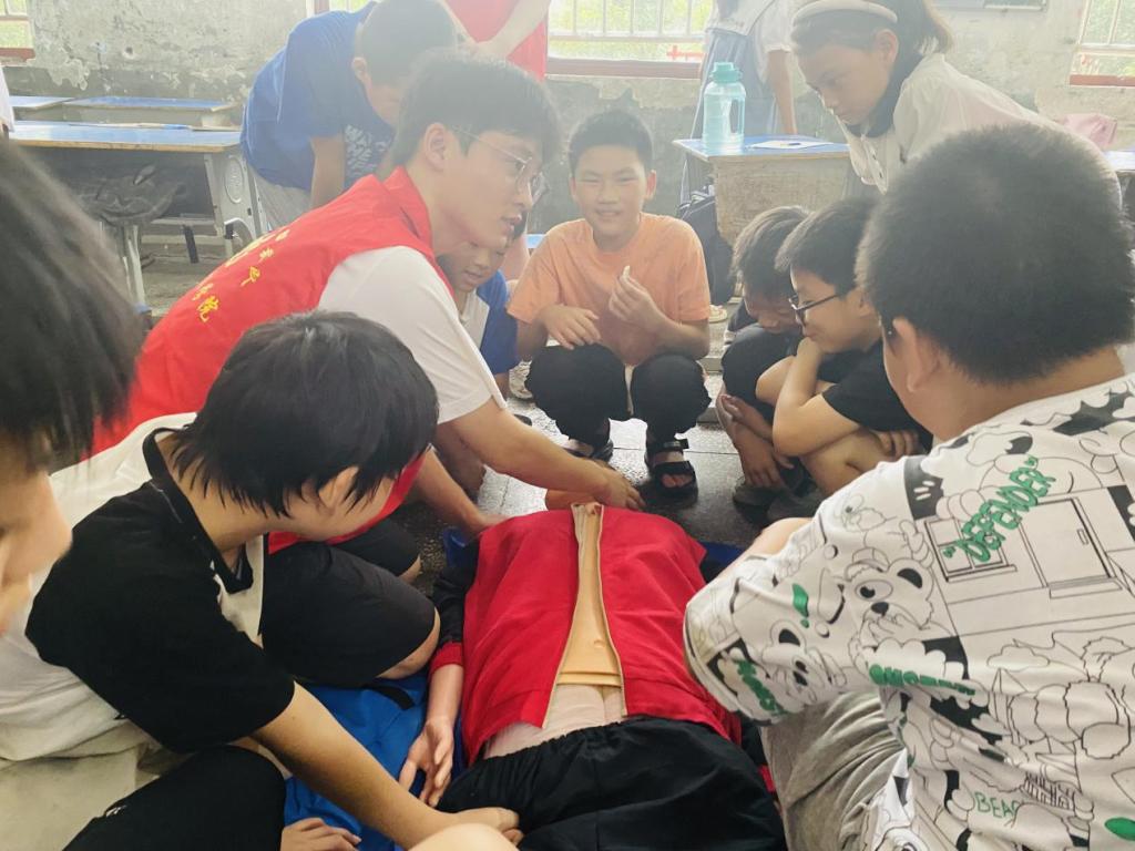 湖北文理学院“湖小医”健康促进志愿服务队在襄城区卧龙镇毕庙村“暑假学堂”开展“人人学急救,急救为人人”防溺水急救宣讲活动,通过理论宣讲、实际操作演示,向小朋友们展示了心肺复苏、海姆立克急救法等常用的急救技能,并介绍了要在确保自身安全的前提下为溺水者提供漂浮物和拉扯物、不盲目下水救人、从背部托起溺水者至其头胸部在水面以上、及时进行心肺复苏和保暖等正确的救护措施。在心肺复苏演示环节,志愿者们一边讲解一边操作,详细演示了胸外按压和人工呼吸的正确步骤和注意事项,小朋友们纷纷模仿学习和动手实操,基本掌握了防溺水急救的知识,增强了健康防护意识。