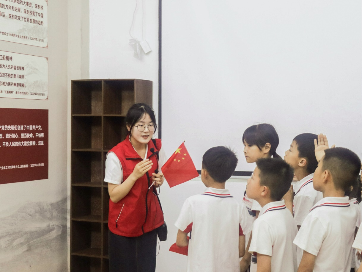 湖北文理学院“携尧治河红旅,筑乡村振兴梦”乡村振兴促进团走进保康县尧治河村“暑假学堂”,开展“复兴之路”红色文化行进式课堂。志愿者通过讲述革命历史故事、展示珍贵历史图片、组织互动问答等环节,引导孩子们穿越时空,边走边学,近距离感受革命先辈的英勇奋斗精神和无私奉献情怀。此外,志愿者们还通过红歌颂唱、革命诗词朗诵等方式激发孩子们的爱国情怀和民族自豪感。