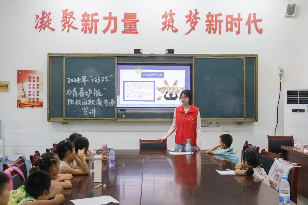 湖北文理学院扶梦青云志愿服务队在仙桃市通海口镇第二小学“暑假学堂”开展心理健康课程,志愿者通过“人生价值大拍卖”游戏进行互动,带领孩子们勇敢表达自我想法。在志愿者的耐心引导和鼓励下,孩子们互相进行“优点大轰炸”,在游戏互动中学会自我评价和评价他人的方法,全方位、多角度地了解自己、认知自己,让每一个孩子都能有一双发现美的眼睛。此外,该团队已陆续开展预防地质灾害和电信诈骗等“12355”暑期自护教育课程,帮助提高青少年自救互救水平,为青少年打好青春护航保护伞。